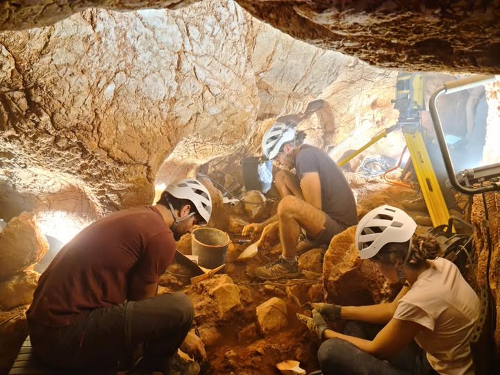A gruta, descoberta em 2016 durante obras na ETAR, já revelou ferramentas neandertais e restos de animais como veados e cavalos.